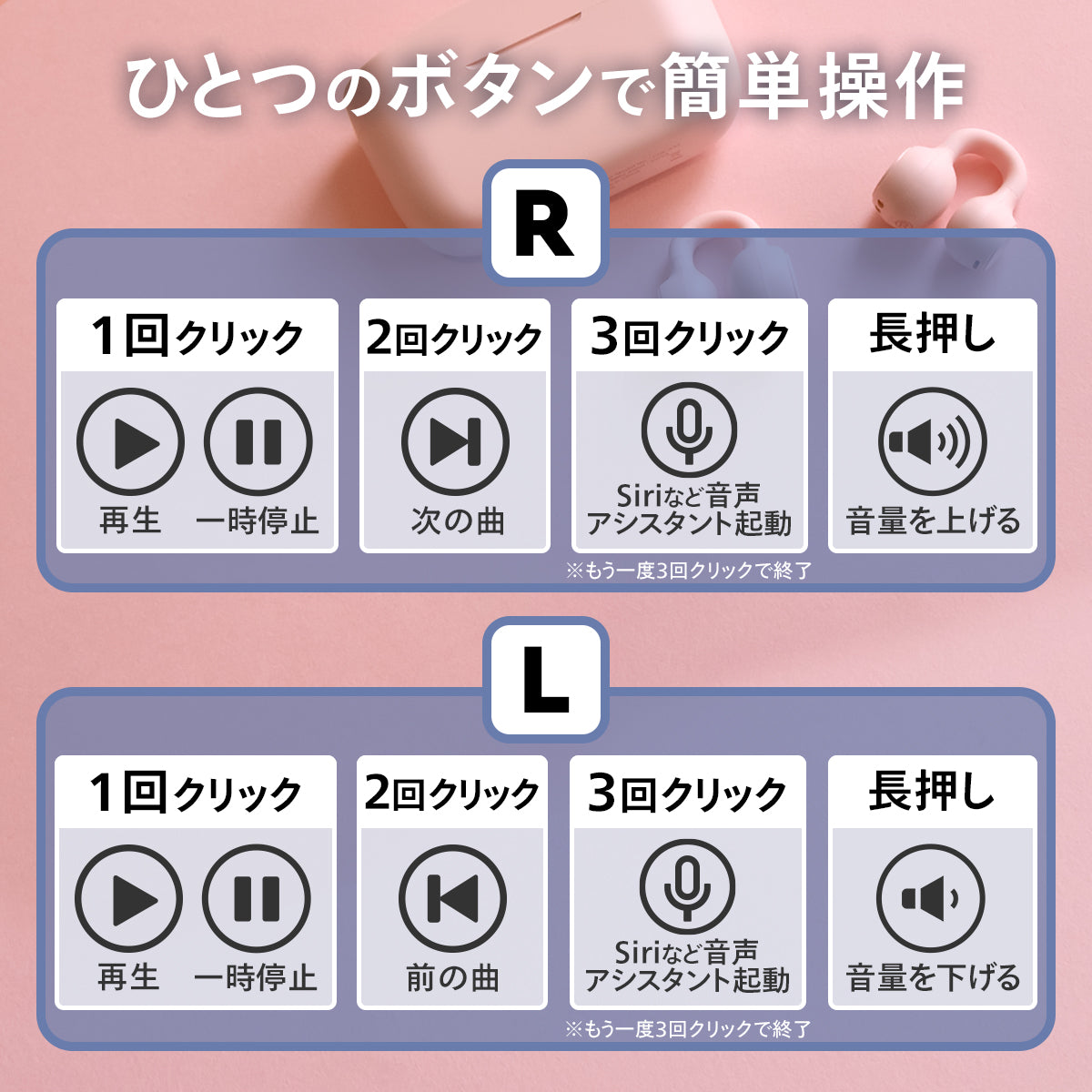 片耳わずか約3.6g、およそ5円玉1枚分の超軽量イヤホン!イヤーカフのように耳を挟むだけで、アクセサリー感覚で装着が可能です。