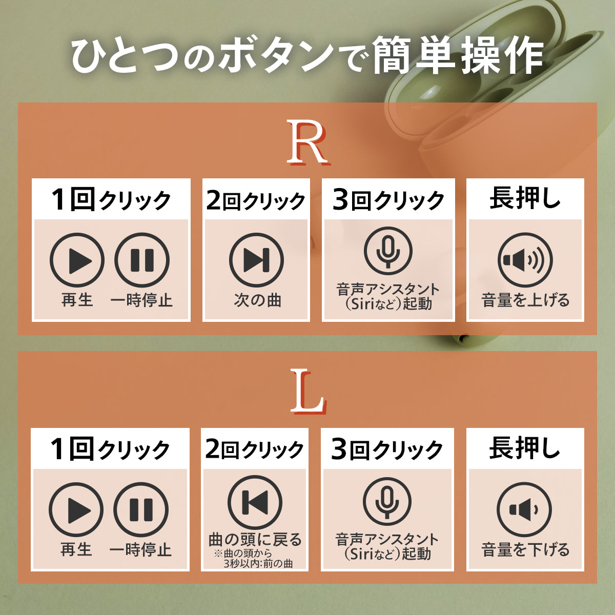イヤホンに13mm大口径スピーカーを採用し、よりクリアな音楽、通話を楽しめます。 連続再生時間は約6時間と、従来モデルより大幅に向上しました。